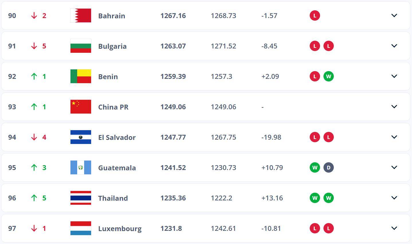 这次排名的提升,源于萨尔瓦多队的连续失利。在9月和10月的世预赛中,萨尔瓦多队仅获得1场胜利,其余三场比赛均告负。尽管萨尔瓦多队曾击败危地马拉队,但接连不敌苏里南队和巴拿马队,最后再次输给了危地马拉队。由于这一系列失利,萨尔瓦多队的积分大幅下降,导致其从第90位跌至第94位。正是这个排名的下滑,将原地不动的国足推上了第93位。
