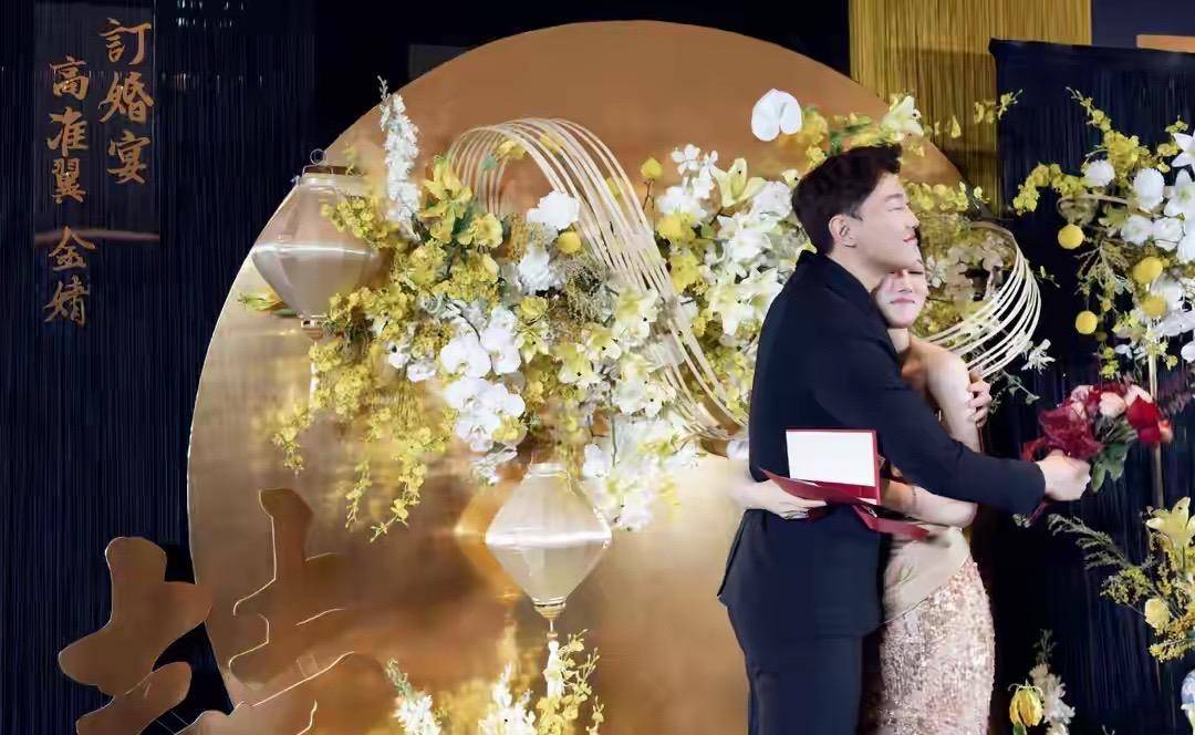 这次婚礼的媒体报道里,新郎高准翼和新娘金婧可是打扮得特别漂亮。高准翼穿了一件白衬衫,配了条深色领带,外面套着一身深色西装,整个人看起来精神十足,脸上红光满面。新娘金婧则是一身白色露肩婚纱,两人手牵手站在舞台中央,简直就是现实版的“金童玉女”,看着就让人羡慕。