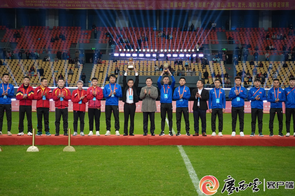 2月7日,赛事正式拉开序幕,历经淘汰赛角逐后,越南广宁省队、越南宣光省队、越南海防市队、中国广西代表队四支队伍开启单循环较量,最终经过8场绿茵比拼,赛事于11日迎来收官之战。当晚,广西体育中心灯光璀璨,在3.6万余名观众注目下,随着歌曲《山歌好比春江水》和舞龙舞狮等充满民族特色的表演结束,压轴进行的中国广西代表队对阵越南广宁省队的比赛正式打响。主场作战的广西队表现出强大的团队配合能力,以4∶1取胜。