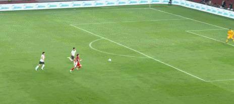 比赛开场后,压力显而易见。 第5分钟,一次反击机会,中锋张玉宁在禁区前沿巧妙做球,将球分给左路插上的王钰栋。 王钰栋接球后直接小角度抽射,可惜皮球偏出了远门柱。 这是国足上半场为数不多的进攻亮点。 整个上半场,双方在中场激烈绞杀,但都难以创造出绝对机会。