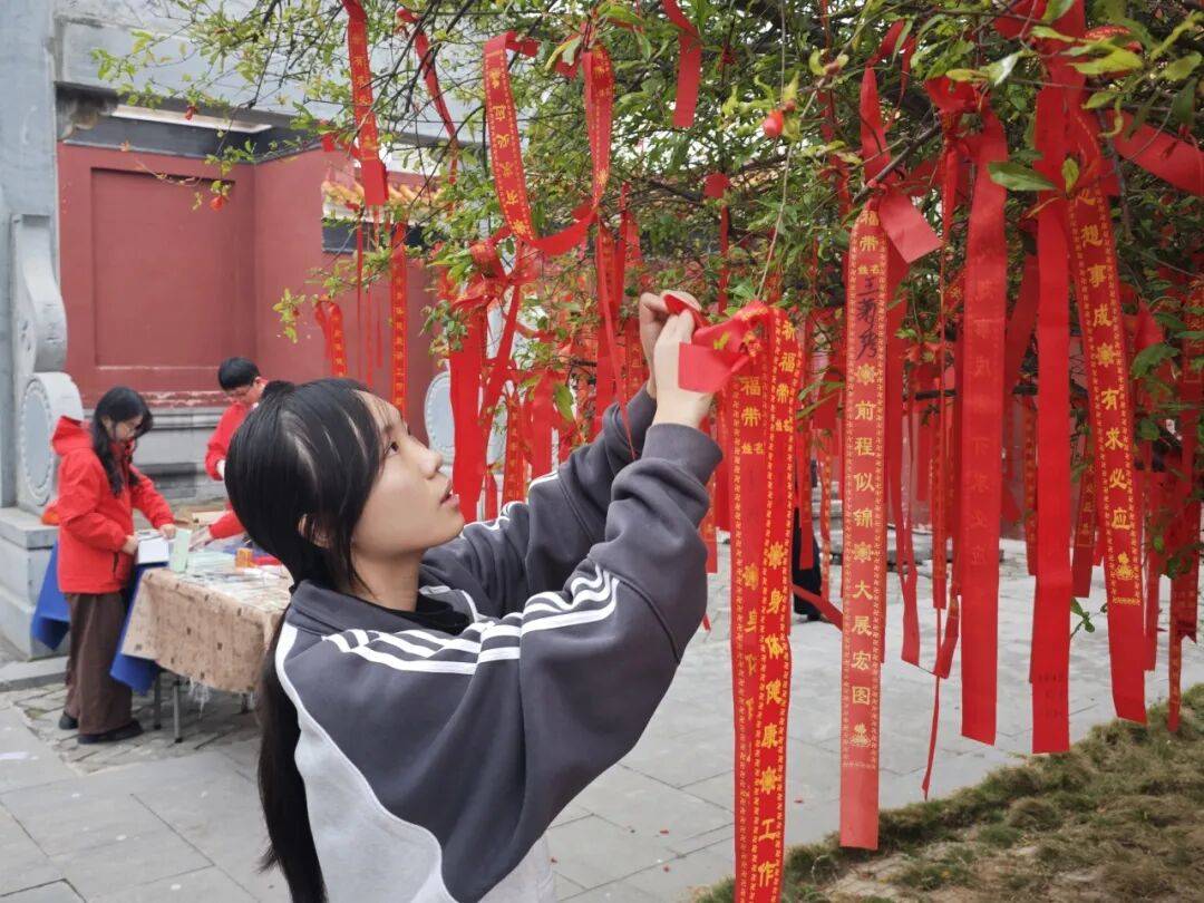 在武宣文庙,市民与游客络绎不绝,拜孔、漆扇、投壶等各种非遗体验和游园活动让浓浓的年味根本藏不住。无数身着新衣的学子与家长携手而来,手中捧着写满心愿的红绸带,小心翼翼地将其挂上枝头,寄托对新一年的美好期许。